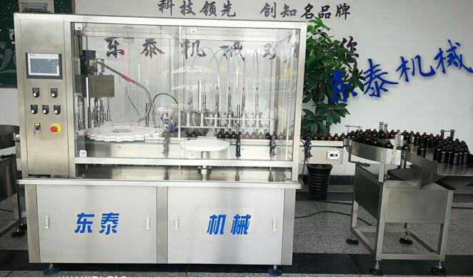 對于注重快速精準的小瓶灌裝,迅捷機械拿出了自己的方案,那就是新一代的小瓶灌裝機。該小瓶灌裝機屬于全自動旋轉式,適用于小劑量液體灌裝,如精油、眼藥水、口服液、糖漿、電子煙油、藥液等。集灌裝旋蓋為一體,灌裝穩(wěn)定精準,旋蓋不傷瓶,是小瓶液體灌裝的理想機器。
