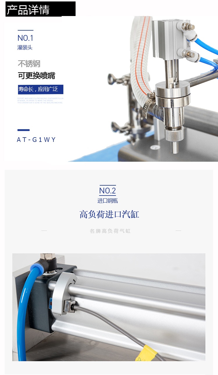 小型半自動單頭液體灌裝機(jī)氣缸細(xì)節(jié)展示